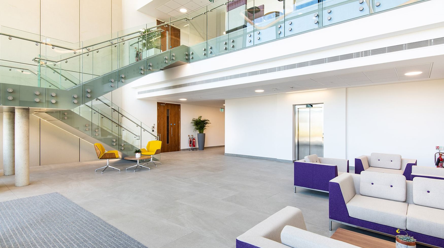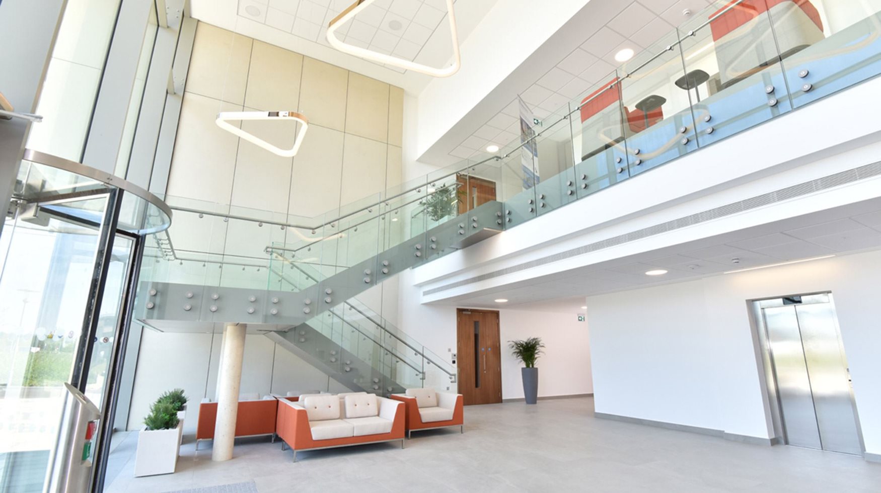 Gridlocked were appointed to carry out the supply and installation of partitions and ceilings within two large-scale research and development buildings, comprising approximately 10,000 sq.m. of integrated laboratory and office space. The design included the installation of ‘sleeper bulkheads’. Having these bulkheads in place allow for the easy re-design of the space, with the knowledge that the ceiling void is already built to the specification of the partition below.